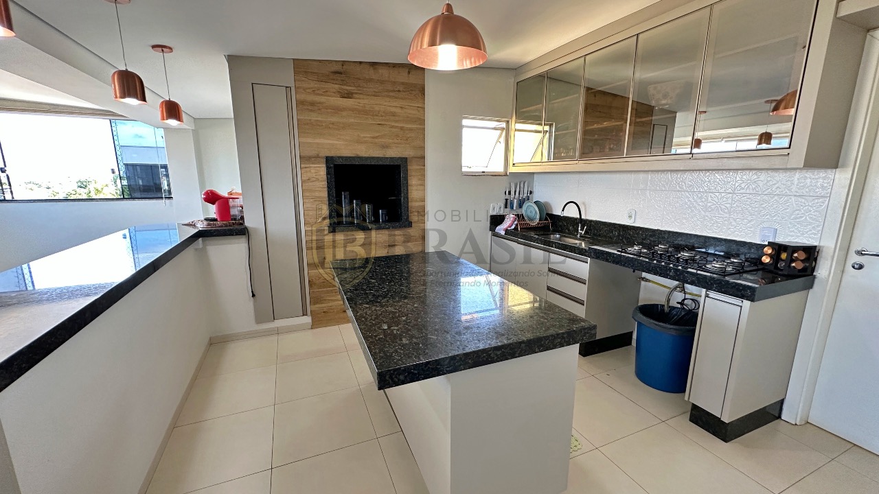 Churrasqueira Bancada em Mármore, Pia com Armários Planejados,